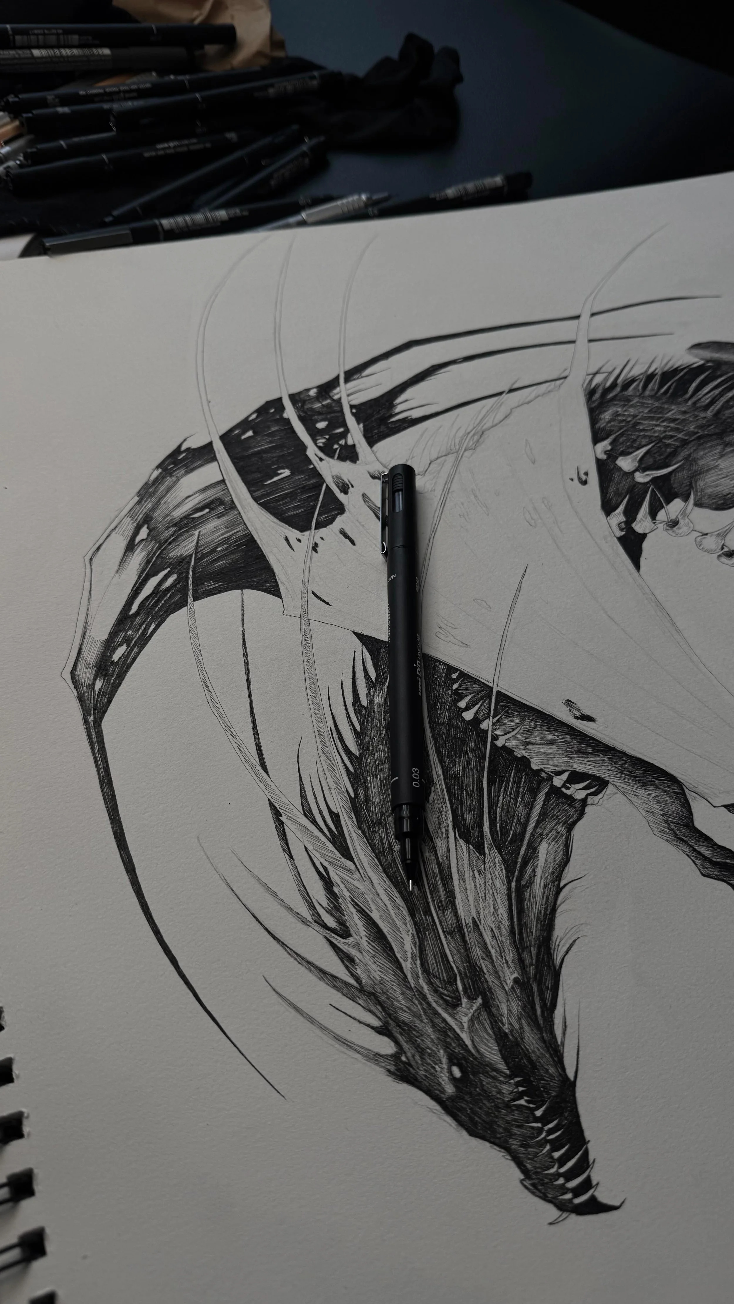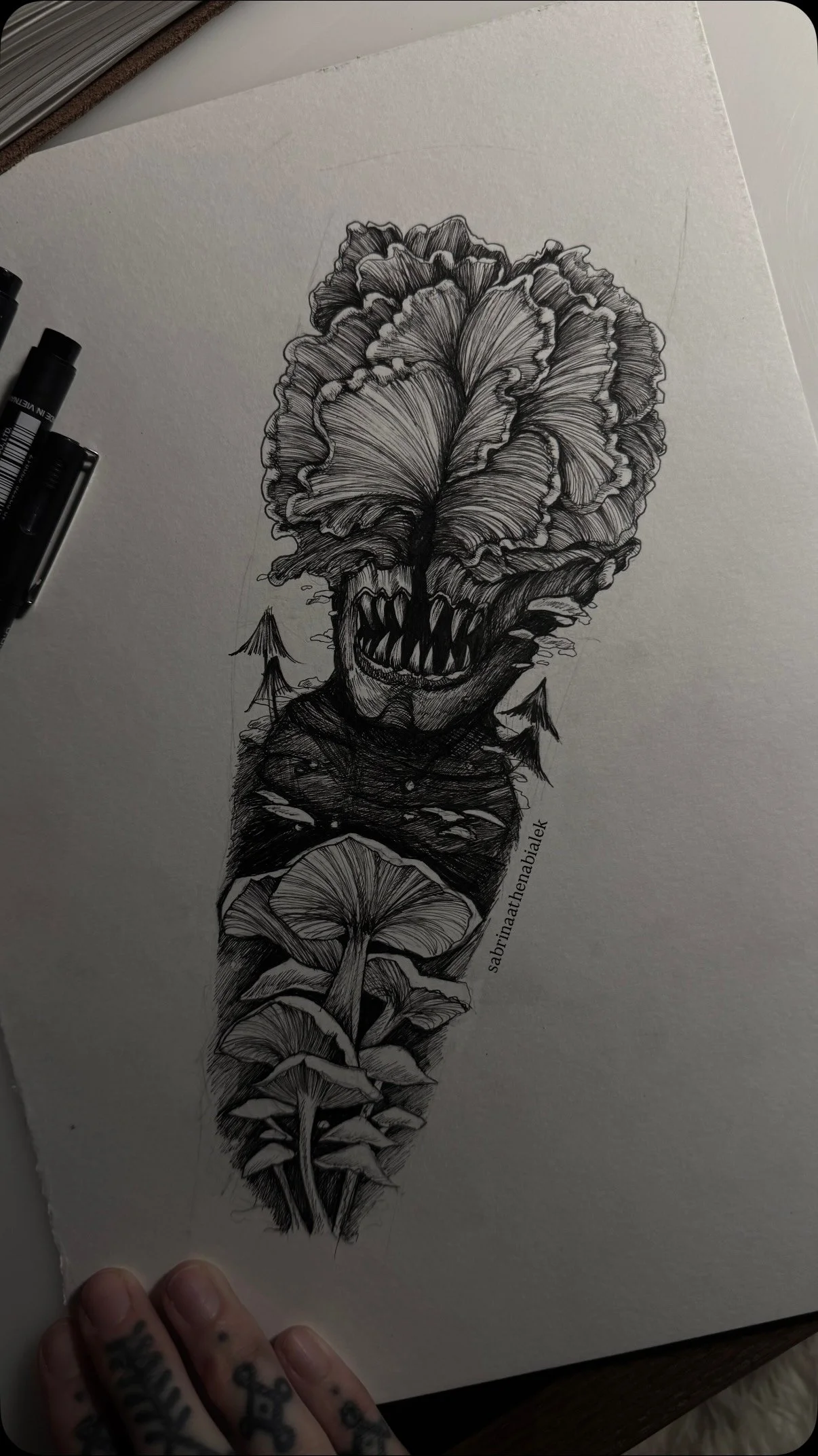 Little quick sketch before bed on handmade cotton rag paper 🖤